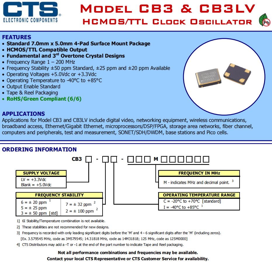 | CB3LV-3C-4M0000 | CTS晶振 | CB3LV | 4MHz | ±50ppm | 4-SMD, No Lead |